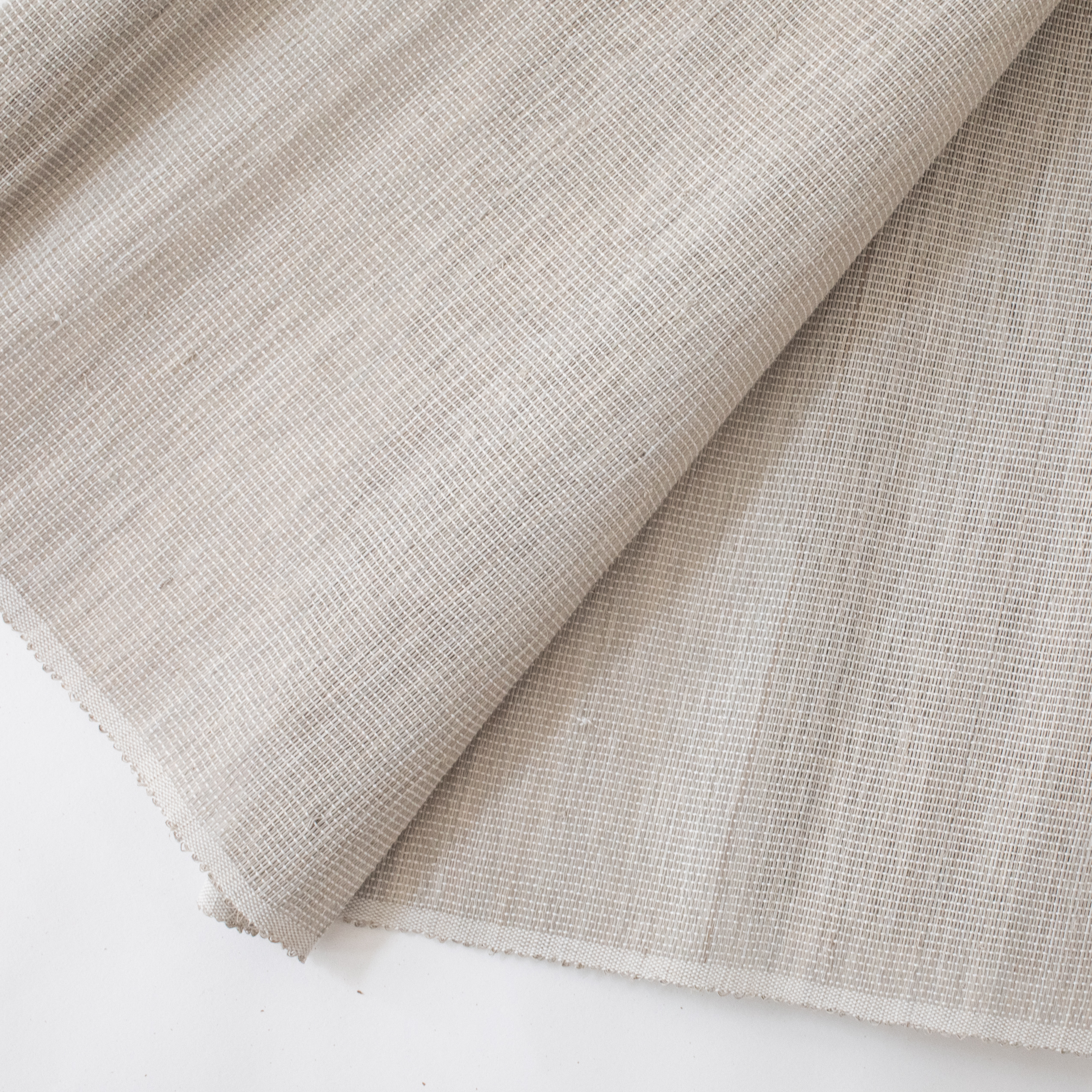 A sheer grey sage with delicate elegance reminiscent of freshly thrown pottery woven with soft white warp thread.